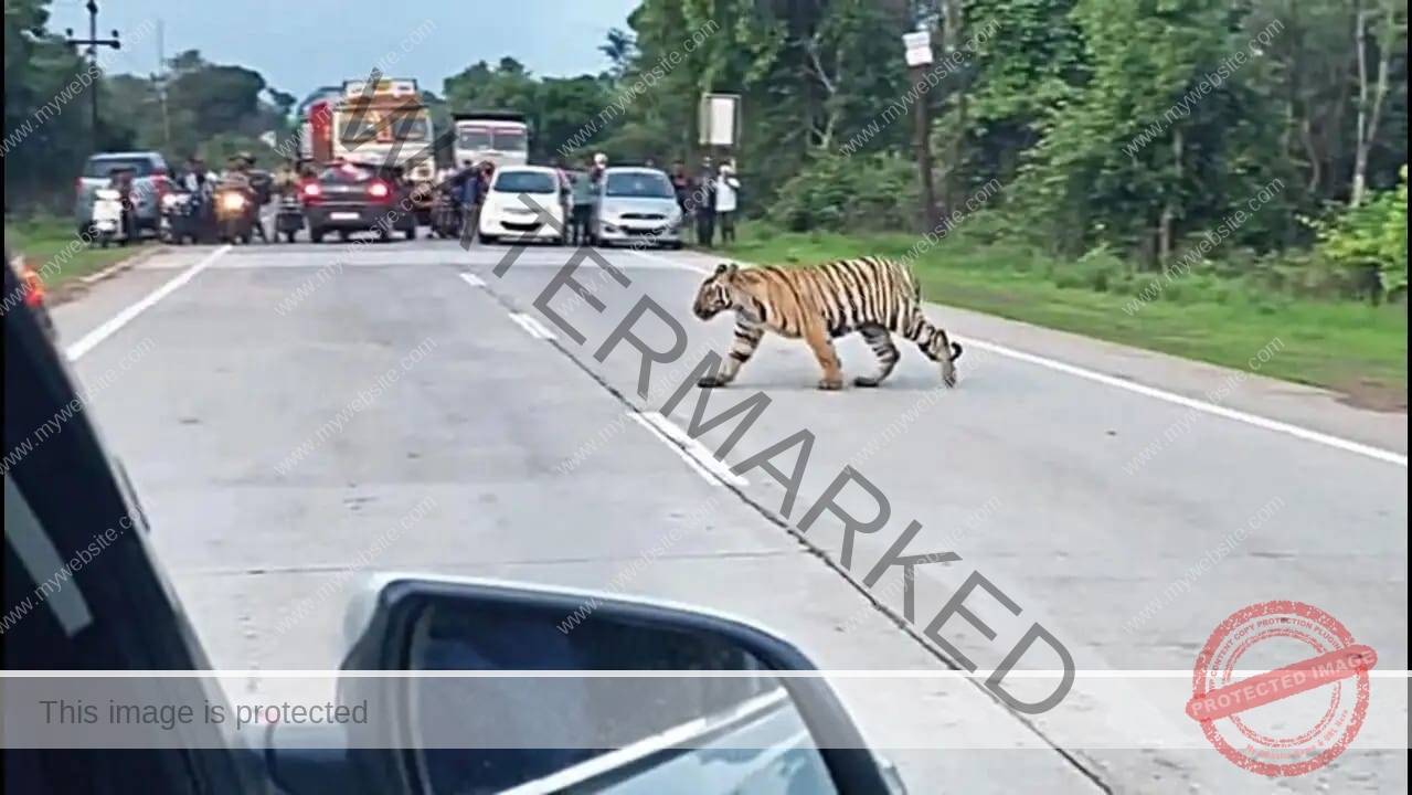 বাঘমামা মাঝরাস্তায় গড়াগড়ি দিচ্ছে, বিশ্রাম নিচ্ছে, যানবাহন আটকে থাকল কয়েক ঘণ্টা