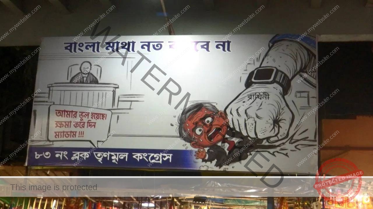 Amudarya News > রাজনীতি > কালীঘাটে বিতর্কিত হোর্ডিং ঘিরে তীব্র রাজনৈতিক তরজা, কমিশনকে কটাক্ষ নিয়ে উত্তপ্ত রাজ্য রাজনীতি