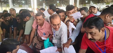 আমুদরিয়া নিউজ : বীরভূমের সিউড়িতে ডি সি আর সি (DCRC) কেন্দ্রে জমায়েতের পর গন্তব্যে যাওয়ার বাস না পেয়ে বিক্ষোভে ফেটে পড়েন ভোটকর্মীরা। জানা গিয়েছে, সিউড়ি থেকে রামপুরহাট, নলহাটি ও কোটাসুরের ডিউটিতে যাওয়ার জন্য পর্যাপ্ত বাসের ব্যবস্থা না থাকায় সমস্যায় পড়েন তারা। ক্ষুব্ধ ভোটকর্মীরা সিউড়ি ডি সি আর সি-র সামনে ১৪ নম্বর জাতীয় সড়ক অবরোধ করেন, ফলে সাময়িকভাবে যান চলাচল ব্যাহত হয়।