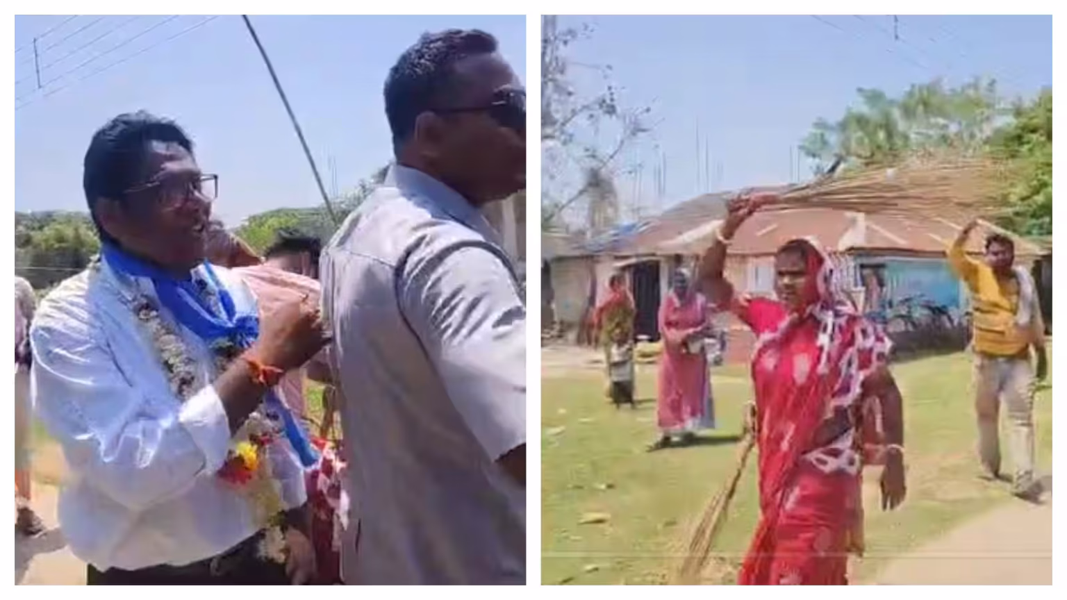 তৃণমূল প্রার্থীকে ঝাঁটা হাতে ধাওয়া মহিলার